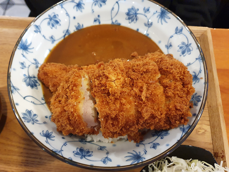 제주흑돼지 안심가츠는 쿠로고마 흑가츠보다 튀김가루가 조금 더 두껍더라고요. 그래서 살짝 더 느끼하단 생각이 들었습니다. 이 날 밥도 좀 살짝 진밥 느낌이었고 카레는 향만 맡아도 진하단 생각이 들었는데요. 그래서 살짝 짜단 생각이 들었습니다. 카레가 돈가츠 튀김옷에 흡수된 부분은 좀 짜단 느낌이 들었고 두 조합이 그리 어울리는 느낌은 아니더라고요. 제 개인적인 기준에서는 살짝 별로였습니다.