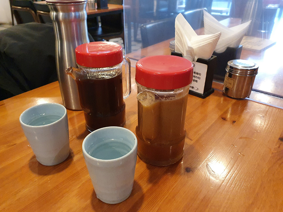 왼쪽은 돈가스 소스 오른쪽은 샐러드 소스 입니다.