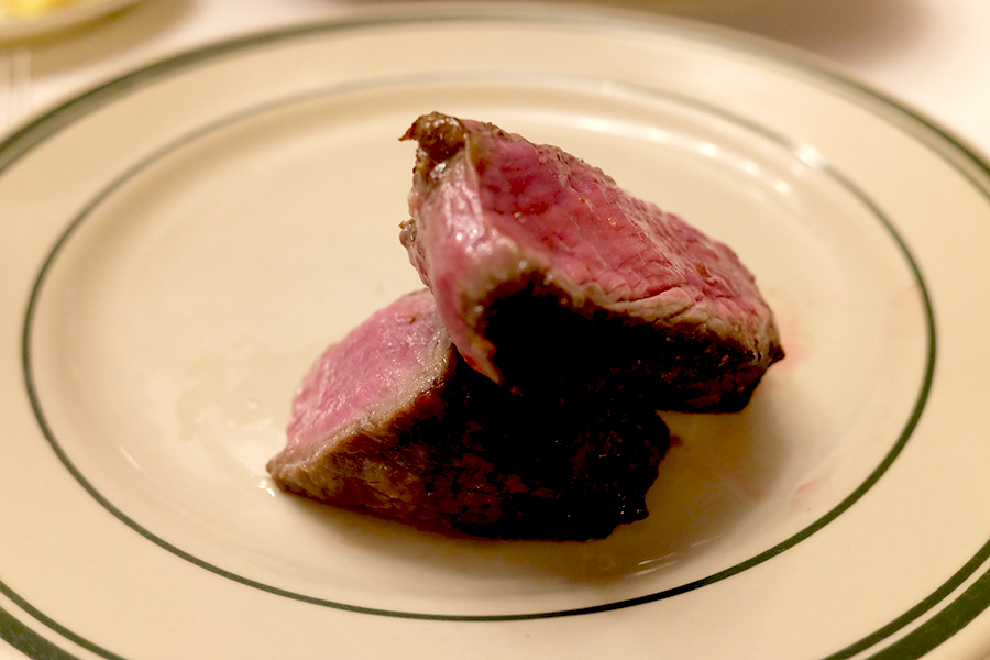 미듐 레어. T본 스테이크라 아래쪽으로 갈수록 굽기가 웰던에 가까워지기 경우가 많은 것 같아요. 미듐 레어로 시키면 몇 조각만 이렇게 레어 하게 먹고 좀 느끼해질때 아랫쪽에 있는 스테이크를 먹으니 저는 딱 좋더라고요. 토마토, 어니언도 느끼함을 잘 잡아줘서 개인적으론 잘 주문했다고 생각했습니다. 겉 시어링이 강하기 때문에 울프강 스테이크는 겉면이 진짜 맛있게 느껴지는 것 같아요. 맛있게 잘 먹었습니다.