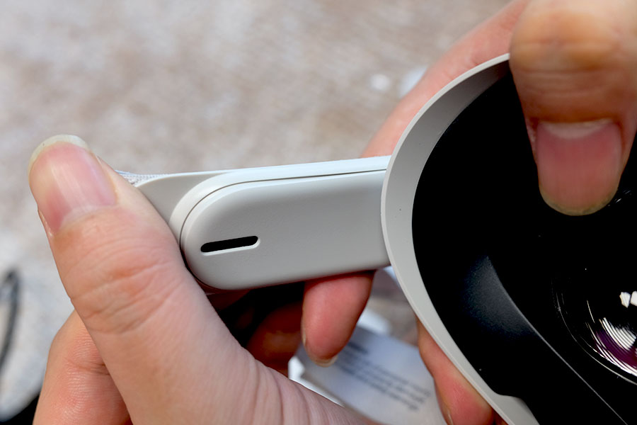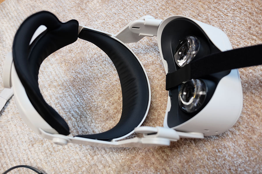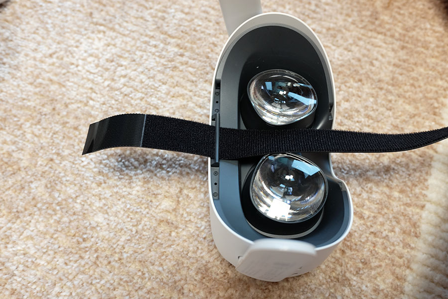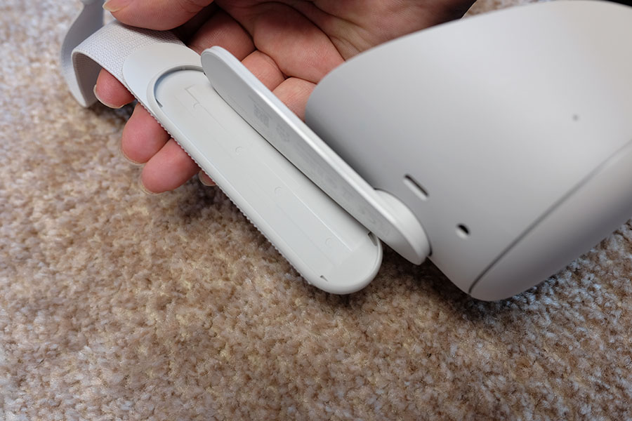헤일로 스트랩과 오큘러스 퀘스트가 연결된 모습.