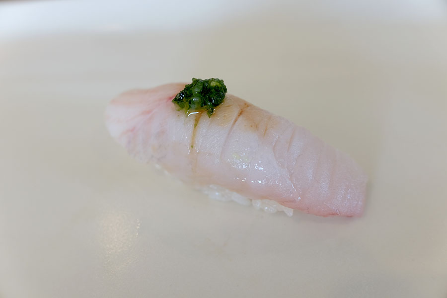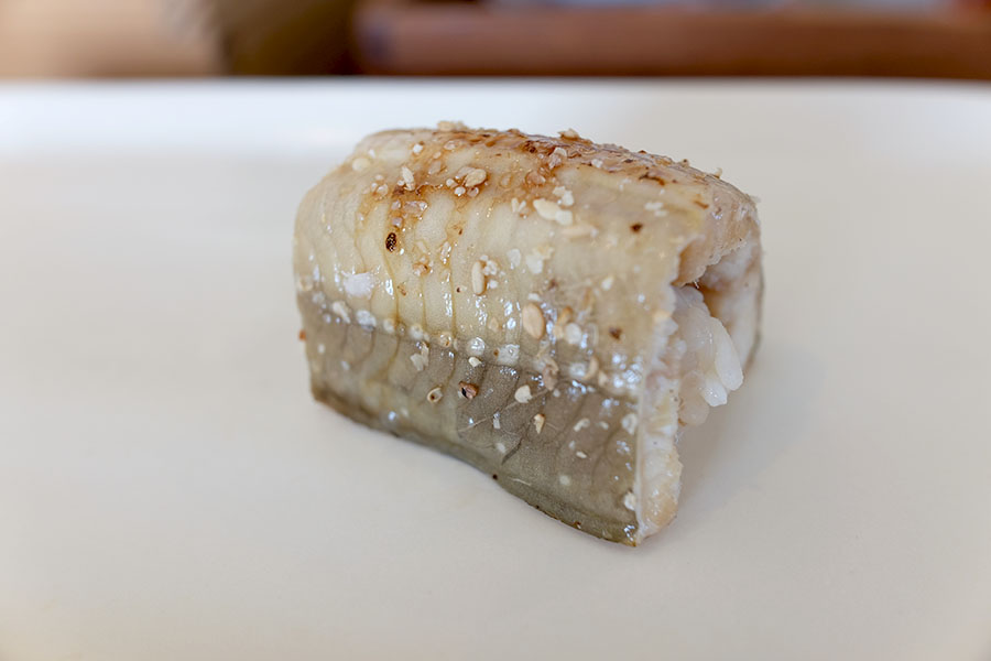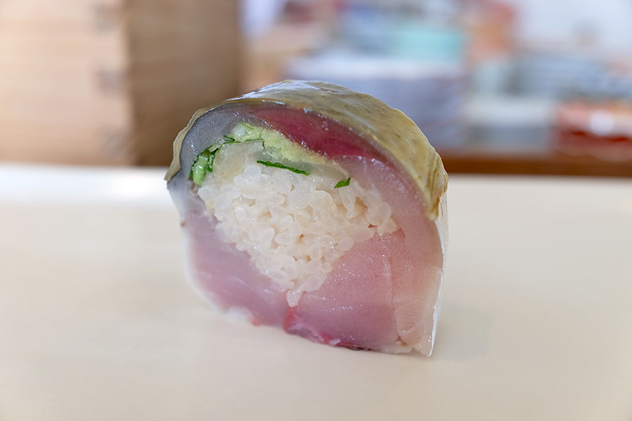 고등어 봉초밥. 보통 고등어 표면을 살짝 아부리하는데 하찌의 봉초밥은 백다시마를 살짝 올리셨어요. 역시 고등어 선도가 좋아서 그런지 깨끗한 느낌.