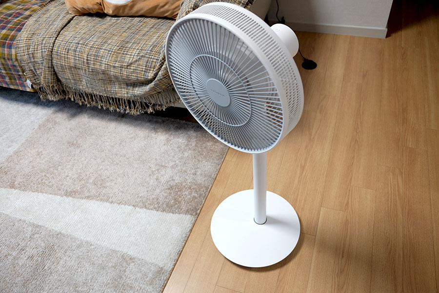 발뮤다는 이렇게 기둥 하나를 제거해서 스탠드형으로도 사용할 수 있는 게 특징. 높이 조절이 되지 않지만 헤드가 위로 약 20도, 아래로 10도까지 조절 가능해서 크게 문제 되진 않는 거 같습니다. 좌우는 최대 150도까지 회전각이 나오기 때문에 꽤 넓게 돌아가더라고요. 좌우 회전각은 설정으로 조절 가능합니다.