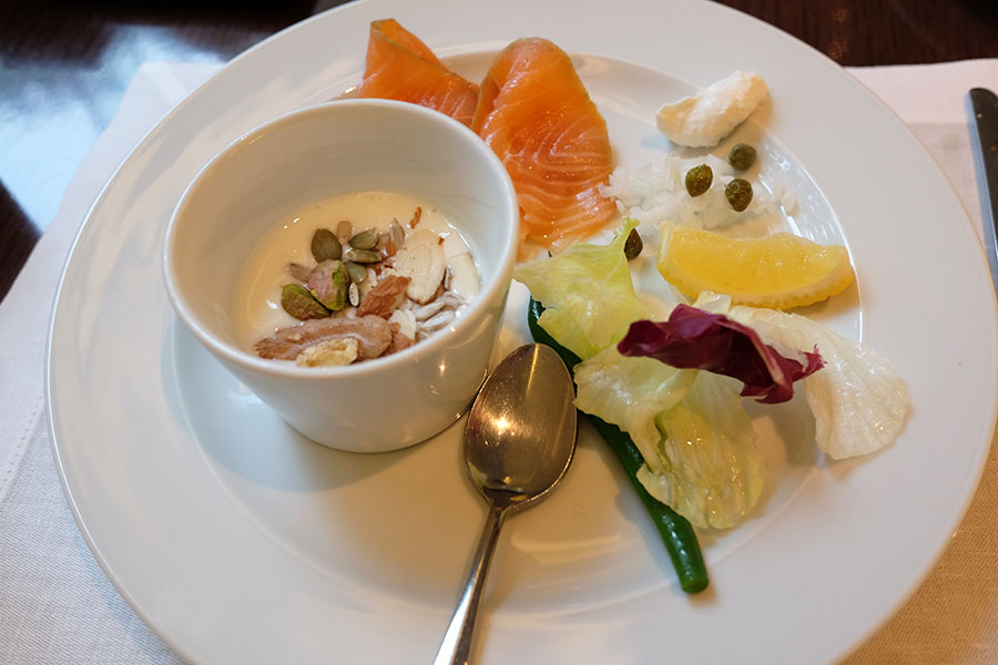 조식에 꼭 챙겨 먹는 요거트와 연어.