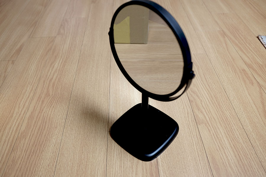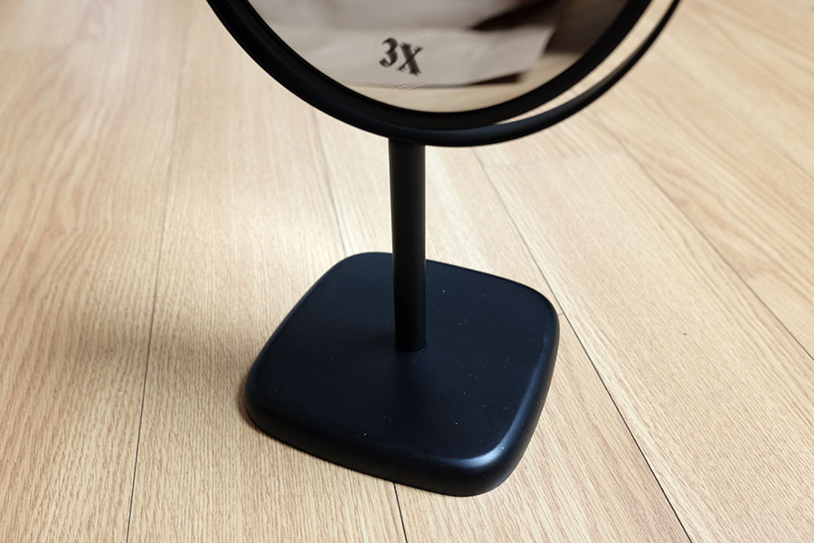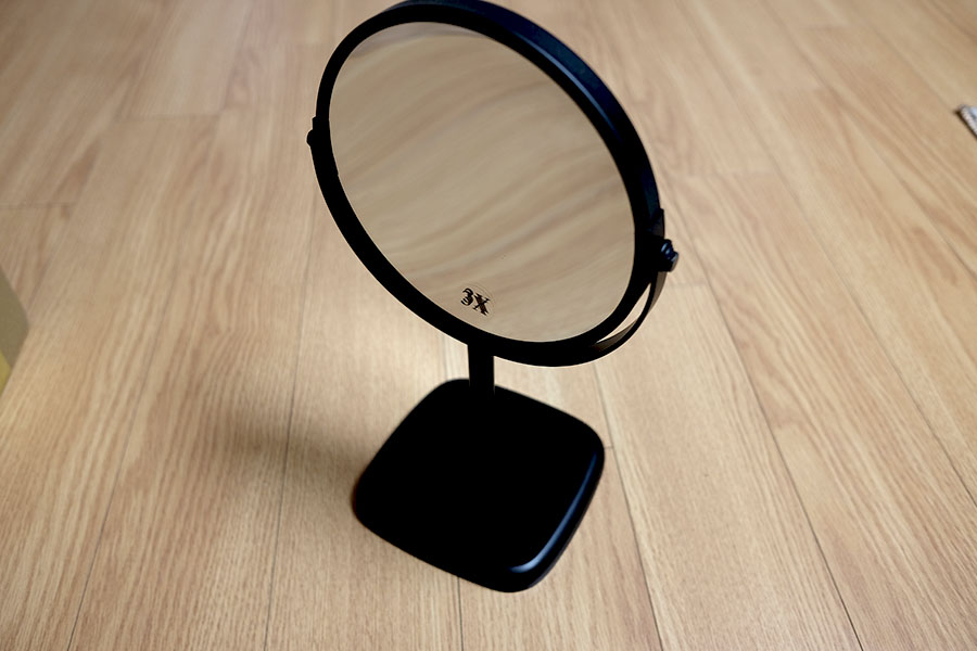 거울 이름이 블랙 레진인 만큼 굉장히 매트한 느낌의 거울이에요. 한쪽은 일반 거울면이고 반대편은 이렇게 3배 확대경이라 유용합니다. 집에 확대경이 필요해서 구입했는데 만족스러워요.