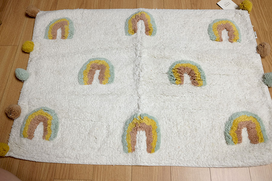 매트 끝에 달린 폼폼이 매력적인 매트에요.