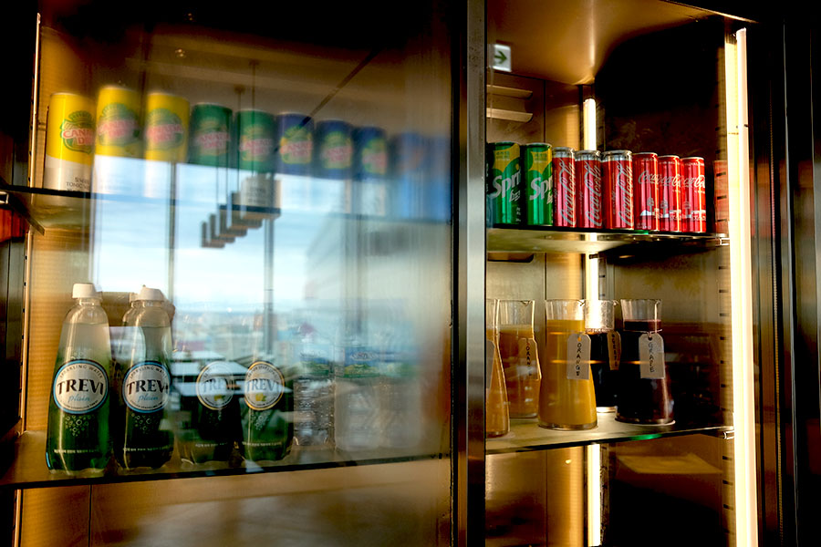 탄산이 배치되어 있고 주스가 3종 준비되어 있습니다.