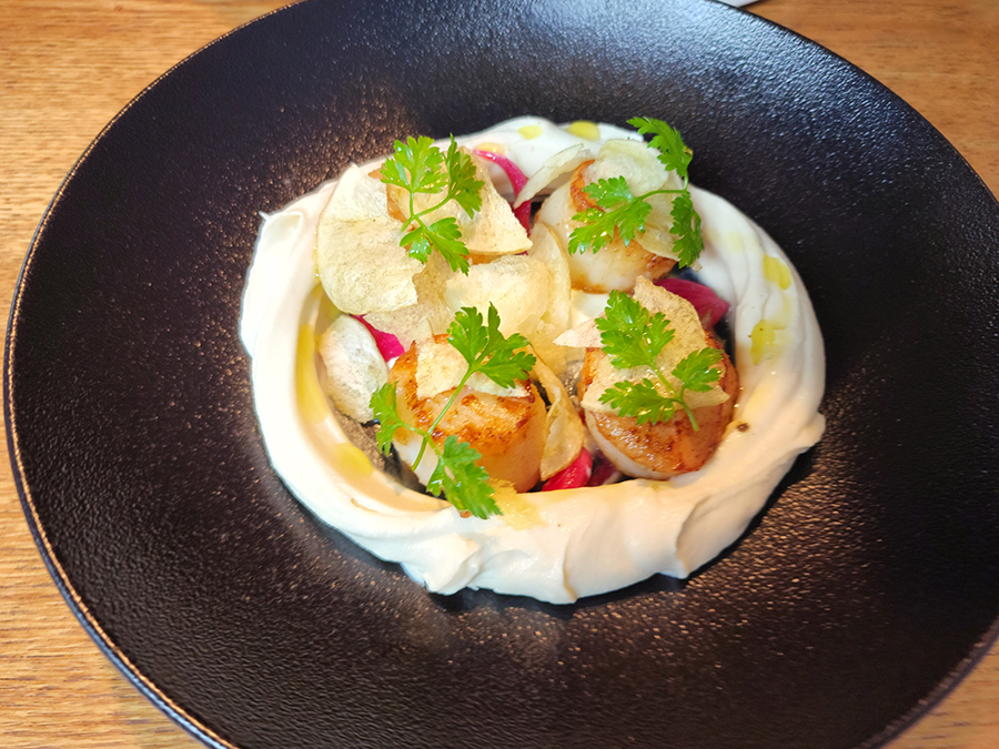 Scallop. 팬에 구운 관자 요리. 사이드는 콜리 플라워 퓨레이고 감자칩, 샬롯과 모두 함께 곁들여 먹으면 맛있다고 하시더라고요. 원래도 파스토 관자 메뉴는 꼭 먹어서 주문해보았습니다. 역시 맛있네요.