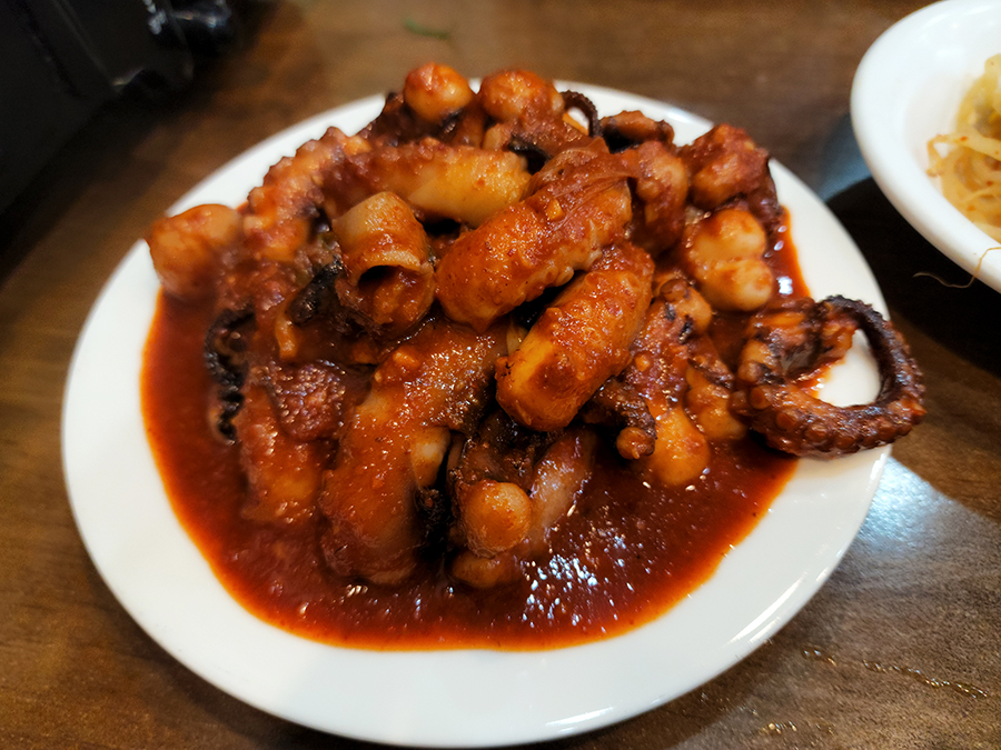 오동통한 낙지 볶음. 예전에도 엄청 매웠던 기억이 나는데 역시나 맵네요. 이것만 먹으면 입에 불날 거 같아요.