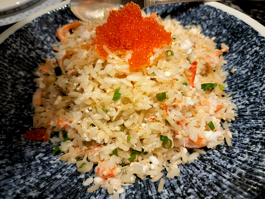 날치알을 곁들인 게살 볶음밥. 가격은 30,000원. 양주 팔보 볶음밥과 고민하다 무난하게 게살 볶음밥 주문했었는데요. 이 날 가장 별로였던 메뉴네요. 밥은 고슬고슬한데 게살과 밥 모두 굉장히 마른 식감이라 목 넘김이 힘들었고 간도 삼삼해서 XO 볶음밥이 계속 생각났습니다. 다행히 광동탕면 국물이 짭조름하게 살짝 적셔서 함께 먹었더니 그나마 낫더군요. 이건 아마 다신 주문하지 않을 듯합니다.