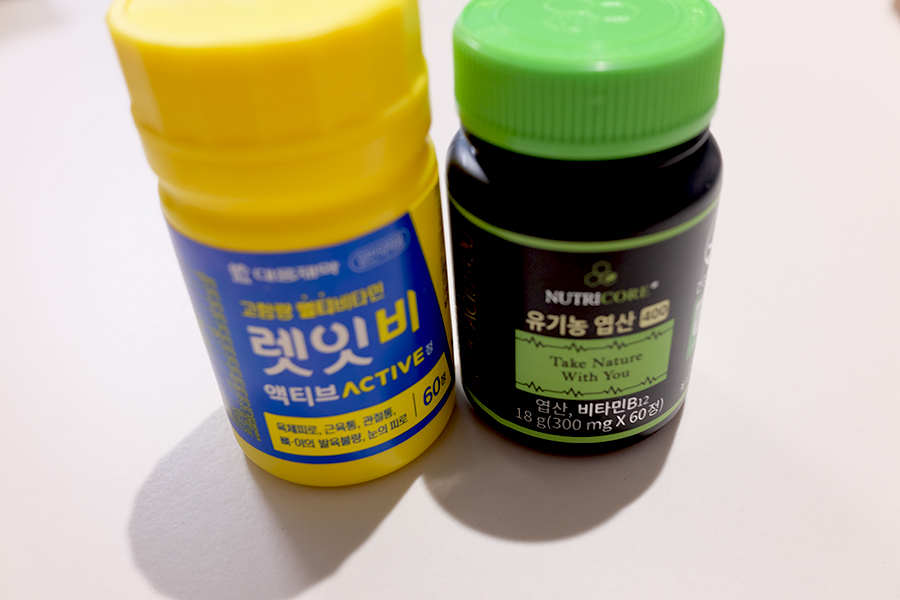 임신 극초기엔 원래 먹고 있었던 렛잇비 비타민b 종합영양제에 오메가3, 유산균 그리고 뉴트리코어에서 나온 유기농 엽산을 챙겨먹었다. 엽산은 임신 초기 배아의 신경계 발달에 매우 중요한 영양소이기 때문에 꼭 섭취하는게 좋다고 한다. 엽산은 활성형, 비활성형 등에 따라서 가격이 꽤 차이가 나는데 어차피 고용량으로 먹게 되는거라 비타민b군과 함께 잘 섭취해주기만 하면 종류에 따라 흡수율 차이가 거의 없다고 들었다.