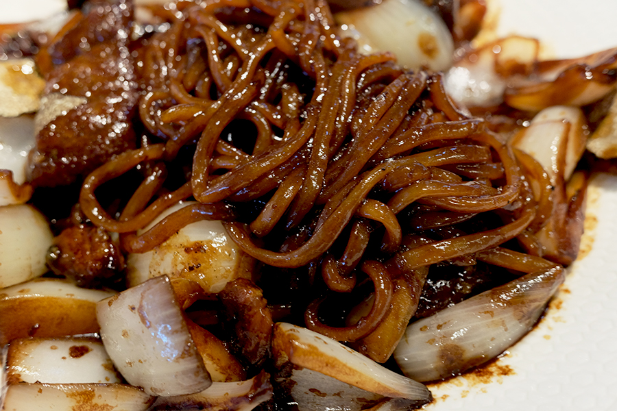 트러플이 올려진 소고기 그런데 짜장면이 아래에 깔려있는.