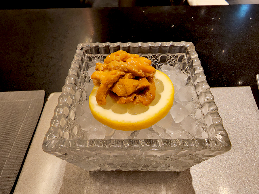 추가로 주문한 우니. 원래 안심에 곁들여 먹으려고 했는데 볶음밥에 나와 조금 당황스러웠네요. 주문하시는 분은 내어주는 디쉬까지 말씀드리는 게 좋아 보입니다. 사실 우니가 살짝 마르고 단맛도 적어서 주문은 비추이긴 합니다.