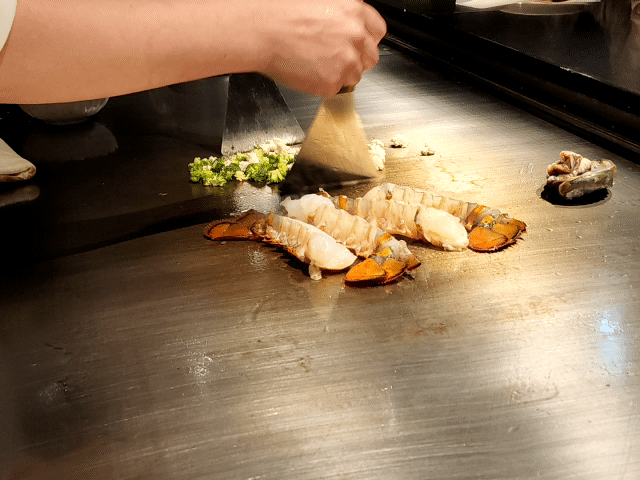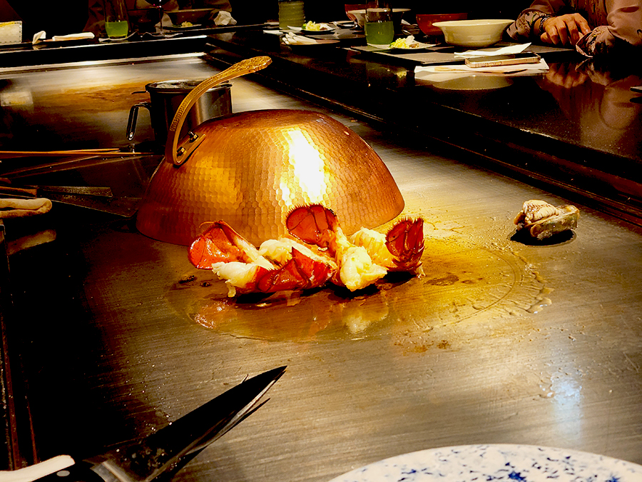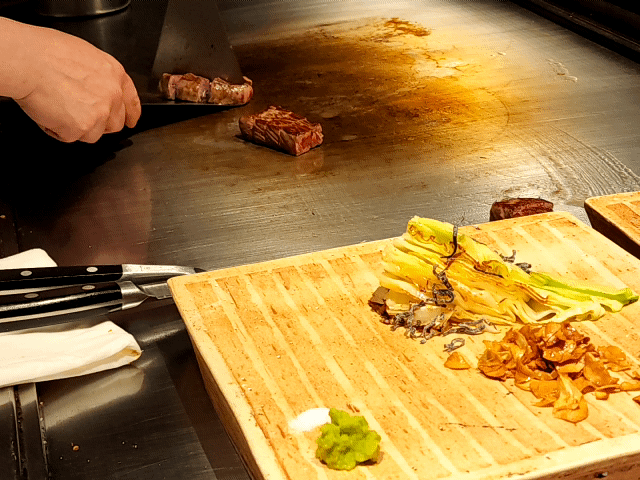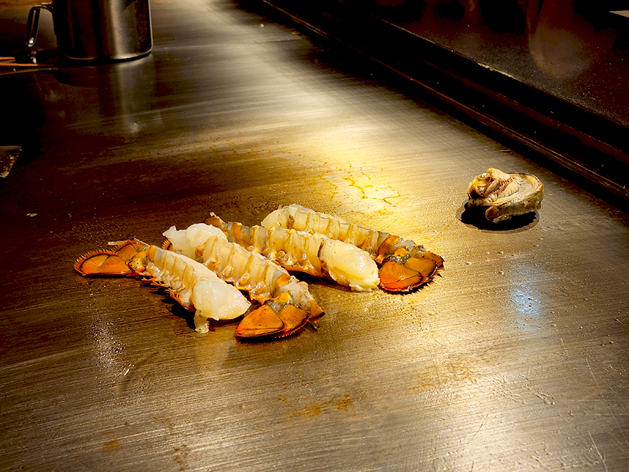 추가 주문한 활전복. 데판에 구워 그 위에 시오 버터를 올려 주시네요. 디너 코스에 나오는 건 데판 위 소금을 올리고 그 안에서 찌듯이 조리되어 나오는 스타일.