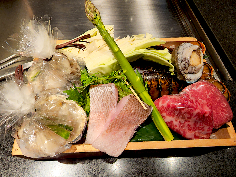 오늘 테판야끼 코스에 사용될 재료를 미리 보여주십니다. 눈이 즐겁네요.