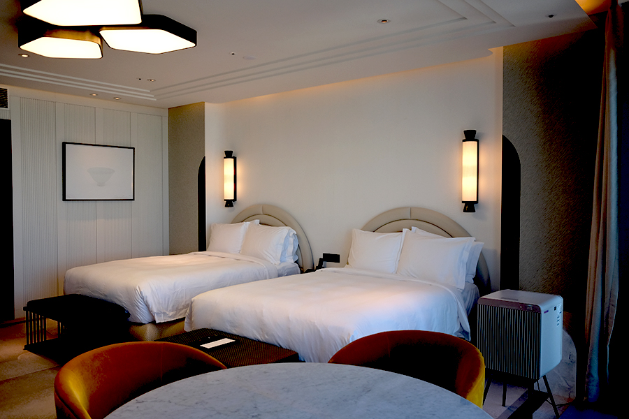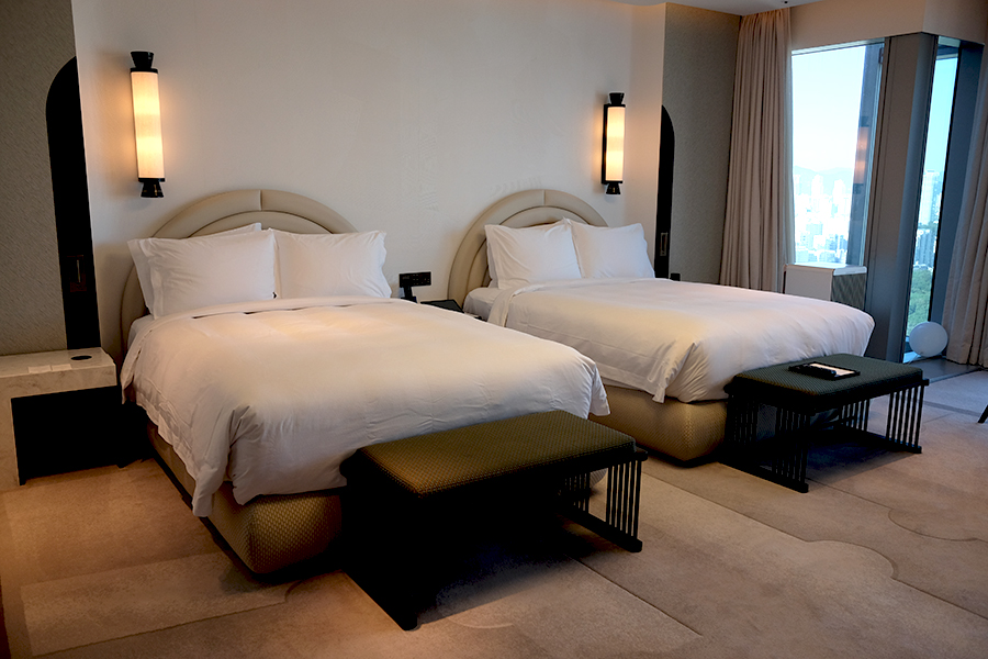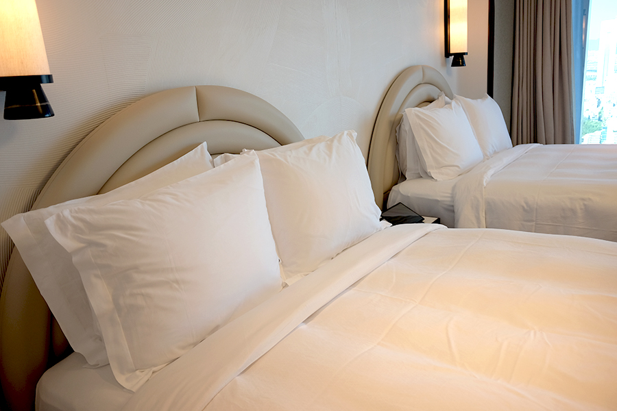 더블룸이라 베드 두개가 놓여 있고요. 매트리스는 시몬스 뷰티레스트 더원을 사용하고 있는 걸로 압니다. 베딩은 프레떼 침구.