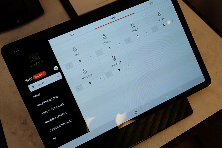 호텔 서비스 요청은 전화 혹은 패드로 할 수 있는데요.