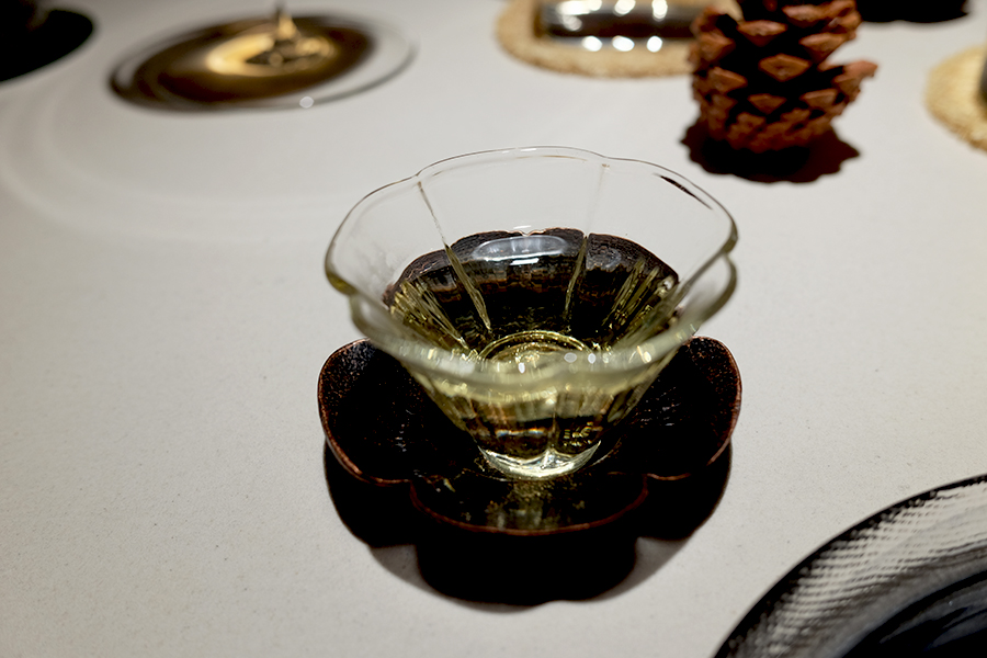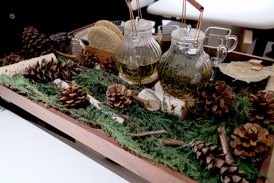 예쁜 솔방울과 한 컷 더. 찻잔도 너무 예쁘고 차가 담긴 유리잔도 너무 예뻐서 정말 다 소장욕구가 들더라고요. 집에서 이렇게 마셔도 정말 좋을 것 같았습니다. 차를 선택하면 그 자리에서 잎 거름망으로 한번 티를 걸러주시는데 그 퍼포먼스도 너무 자연친화적이고 좋았습니다.