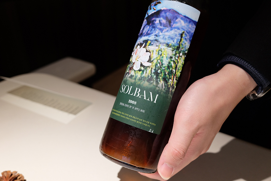솔밤은 와인 페어링이 8글래스로 되어 있더라고요. 남편 혼자 8잔을 페어링 하기엔 다소 부담스러워 가볍게 영동 사과와인 한 잔 부탁드렸습니다.