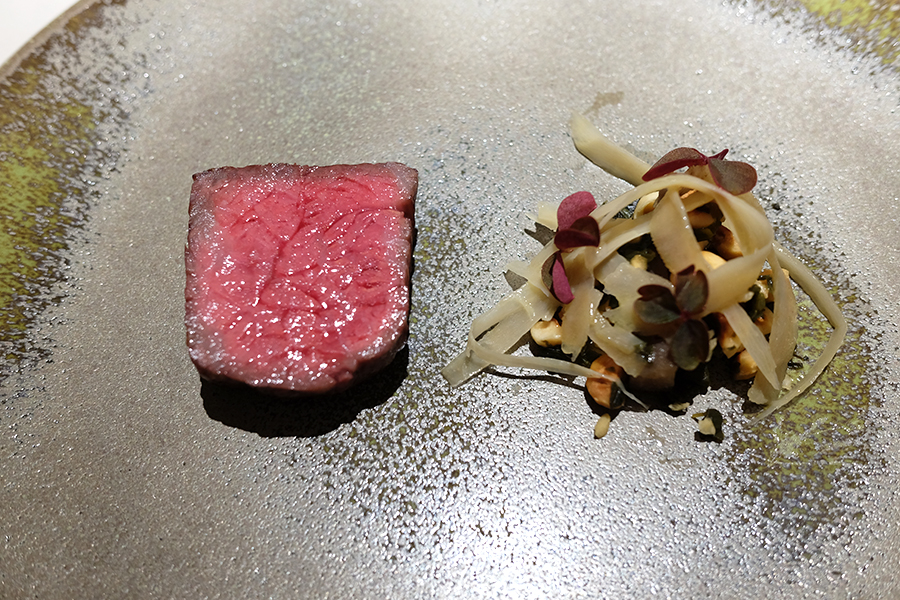 우엉 가니쉬와 함께 먹는 한우 등심 스테이크. 레스팅 할 때도 훈연 향이 참 좋다고 생각했는데 한 입 베어 물때도 그 향이 그대로 느껴지더라고요. 후각, 시각, 미각을 동시에 만족하는 그런 디쉬가 아니었나 싶습니다.