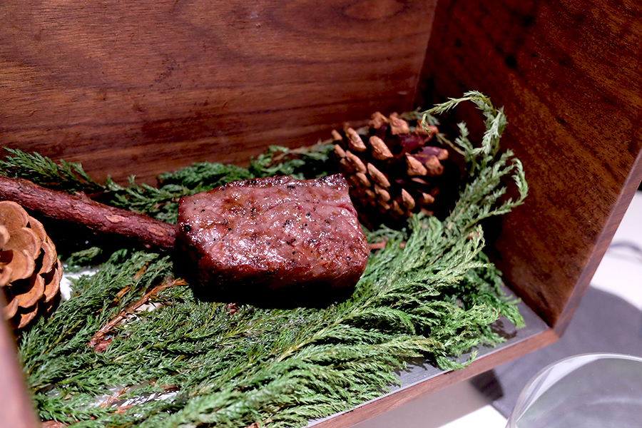 그 안에는 오늘 먹을 88일 간 드라이에이징 한 투뿔 한우가 이미 잘 구워져 레스팅 중이더라고요. 상자를 서서히 여는데 훈연한 향이 테이블 주변을 퍼져 어찌나 괴롭던지요. 크게 잘라달라고 말하고 싶은걸 속으로 삼켰습니다.