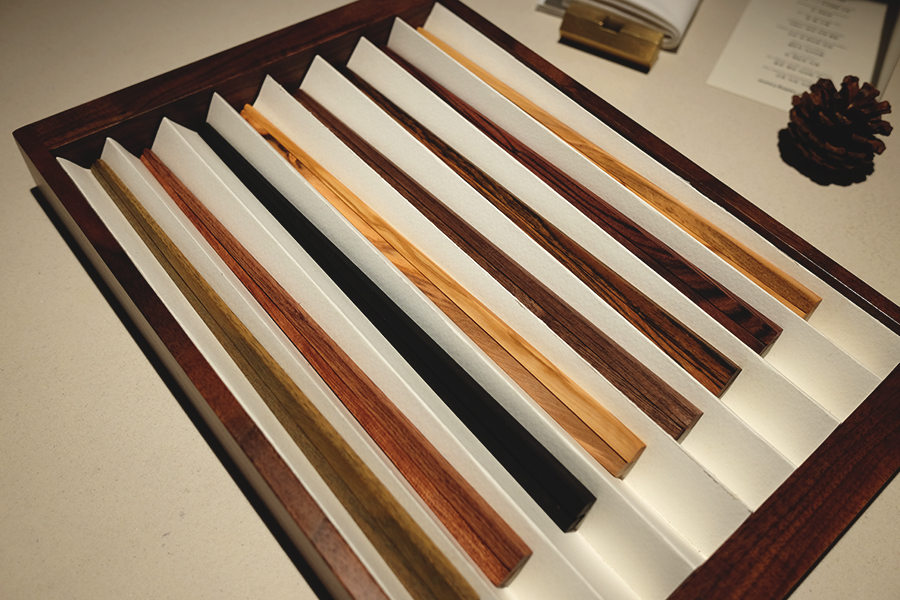코스 시작 전 솔밤의 트레이드 마크와 같은 젓가락 고르기 시간. 핑크색 나무젓가락이 최고 인기가 많아 다 나갔다며 미리 고백해주시던 직원분. 젓가락마다 나무 재질이 다르니 색도 다르고 무늬도 달라 고르기 너무 어려웠습니다.