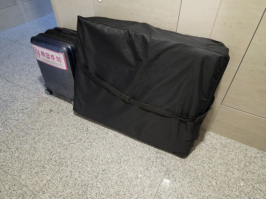 트리니티 홈스파를 예약하면 이렇게 하루 전날 베드와 캐리어가 집 앞에 도착해있다.