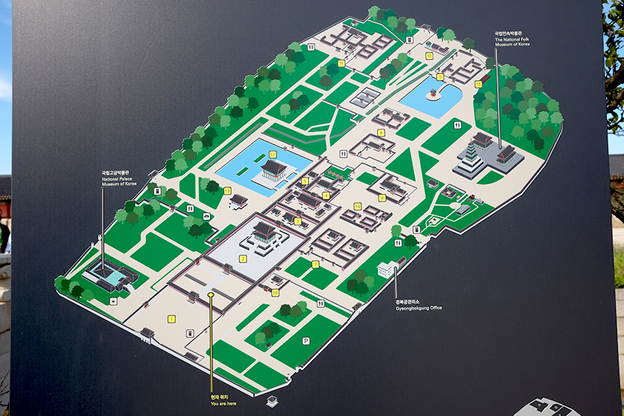 경복궁 입장 후 지도에서 생과방 위치를 다시 한번 확인합니다. 생과방은 소주방에 위치하고 있기 때문에 지도상 14번 위치를 확인하시고 찾아가시면 됩니다.