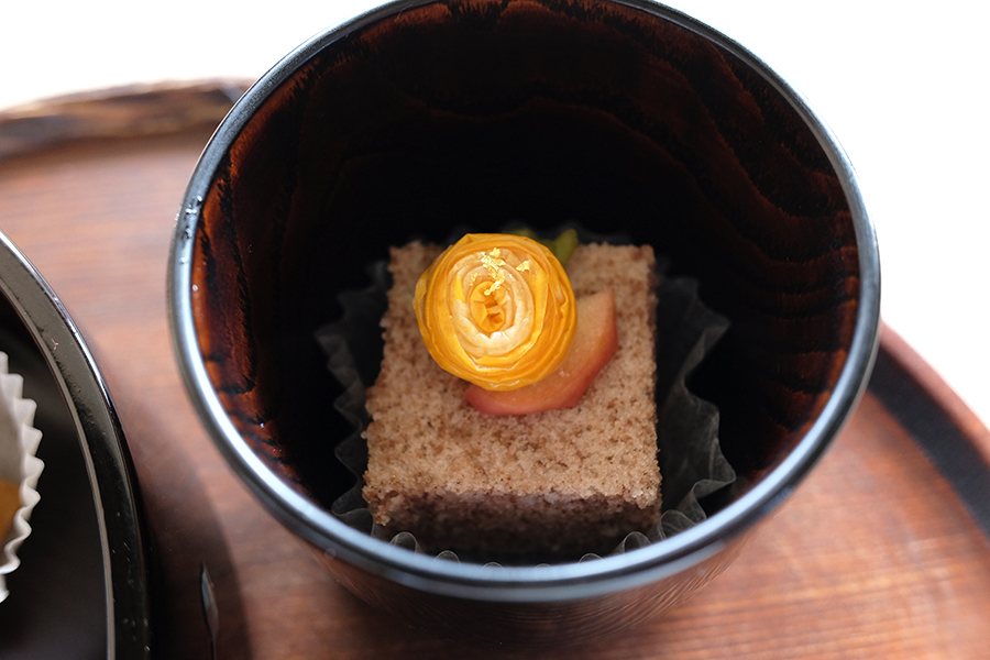 가운데는 주악이고 오른쪽부터 매작과, 약과, 사과 정과, 호두 정과입니다. 매작과는 어묵 튀긴 맛이 나고 약과는 평소 먹는 약과보단 살짝 덜 달아요. 주악은 첫맛은 기름 맛이 있는데 씹을수록 쫄깃한 찹쌀과 그 안의 단맛이 우러나 맛있었습니다.