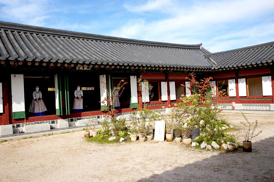 자리에 앉으면 이렇게 나인 복장을 한 직원분들이 주문한 다과를 내어주십니다.
