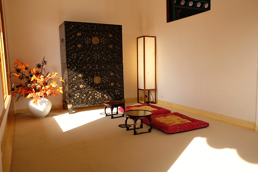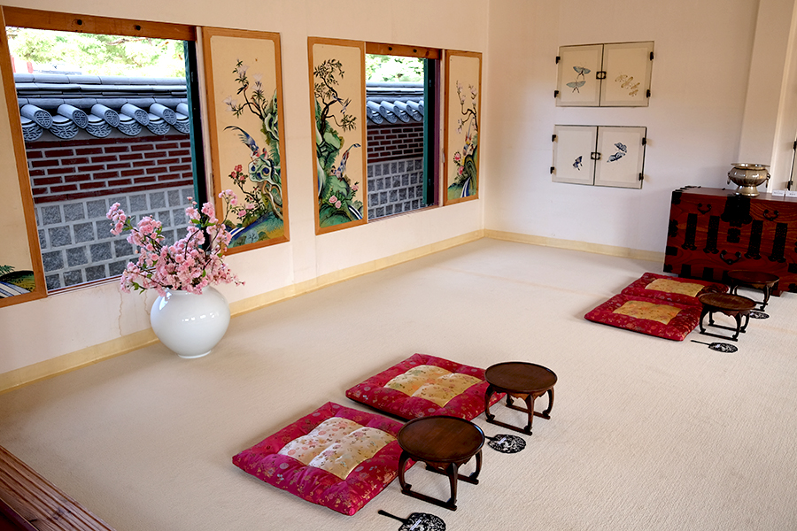 좀 더 넓은 방에 트인 공간이고 특히 가운데 있는 정원을 마주 볼 수 있어서 인기가 높은 거 같습니다. 저희도 운이 좋게 3번째로 도착하여 대청 자리에서 다과를 즐길 수 있었습니다.