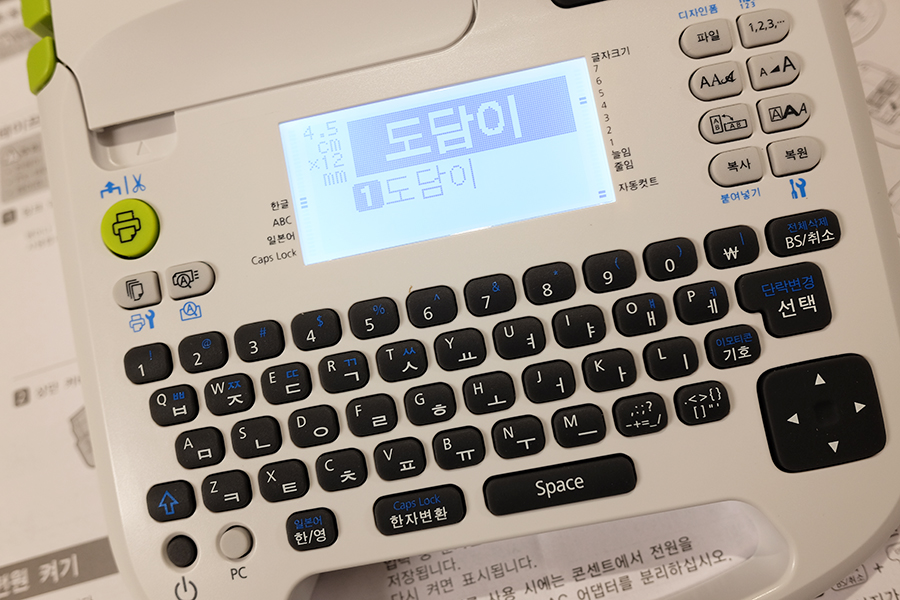자판도 부드럽게 눌리고 반응 속도도 좋네요. 라벨 프린터 저렴한건 쓰면서 수정하거나 글자 위치 옮기는 등 불편한 점이 좀 있는데 이 모델은 굉장히 편합니다. 서체 변경이나 글자 복사 등 기능이 꽤 많던데 아직 다 못써보고 있습니다.