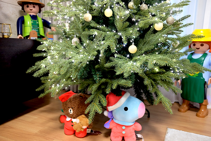 스탠딩 인형이라 크리스마스 트리 밑에 놓아두면 딱 좋더라고요. 스탠딩 지지대로 가려지고 모던했던 트리에 큐트가 첨가되었습니다.