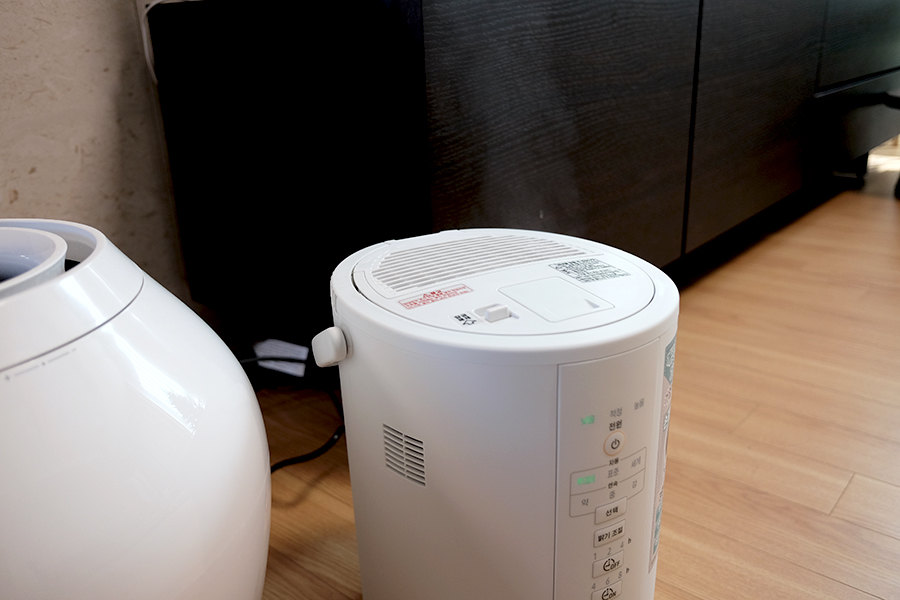 이제 물을 담고 가습기 돌릴 준비 끝. 물은 온수를 미리 담아주면 더 빨리 가습 된다고 해서 그렇게 쓰고 있습니다.