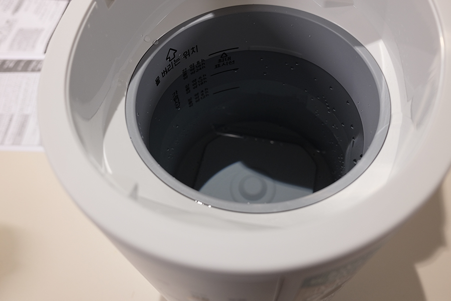 내부 용기는 이렇게 생겼고요. 최대 표시선까지 물을 부어주면 되는데 약 모드로 약 24시간까지 가능하다고 적혀있습니다. 물이 완전히 마른 뒤 꺼지지 않고 바닥에 고인 상태에서 물 부족으로 멈추더라고요. 계속해서 가열되는 구조가 아니라 더 안심입니다.