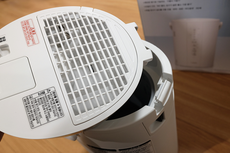 가습기 열때도 잠금해제와 가운데 있는 버튼을 같이 위로 당겨줘야 열리는 구조라 아이들이 열기 쉽지 않아 보이더라고요. 그래도 뒤에 있는 구멍으로 열기를 머문 기체가 나오니 손 닿지 않는 곳에 두는 게 좋은 것 같습니다.