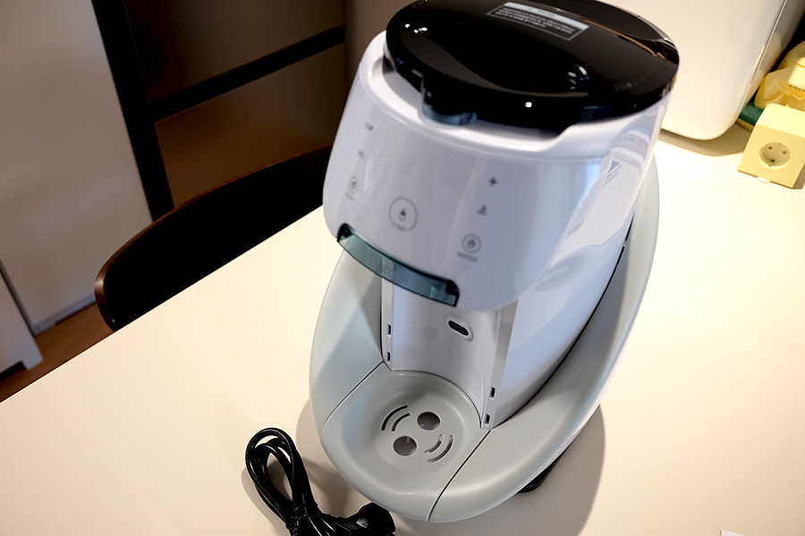 물통은 사선으로 잡아당기면 빠지는데 분유 제조기 뒷 공간에 여유가 있어야 좀 더 편하게 쓸 수 있는 구조였다. 빼는 건 그나마 쉬운데 다시 장착할 때도 사선으로 안에 구조를 보고 잘 맞춰서 끼워줘야 한다는 게 불편했다. 잘못 끼우면 플라스틱끼리 부딪히는 소리가 엄청 듣기 싫게 나고 스크레치 갈 것 같은 느낌마저 들었다. 일단 외관상 가장 별로였던 점이 의외로 물통 끼우기였다. 물통은 그냥 일직선으로 툭 쉽게 끼워지는 구조가 최고인 거 같다.