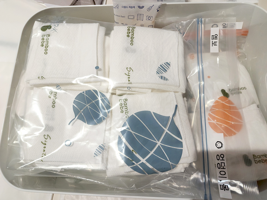 겨울철이라 건조해서 상관없을꺼 같지만 지퍼팩 다 안 잠그고 박스에 넣어준 뒤 박스 밖에 제습제도 하나 넣어줬다. 손수건 빨래는 2일 정도 걸렸고 이 뒤로도 겉싸개, 이불, 침대 가드 등 하나씩 세탁하다 보니 가습기 안 돌려도 집 안에 습기가 뿜뿜.이제 거의 다 세탁했고 아가 옷만 세탁하면 끝이 난다. 출산준비물도 거의 다 구입해서 조만간 출산 가방만 싸놓고 이젠 좀 쉬어야겠단 생각이 든다.
