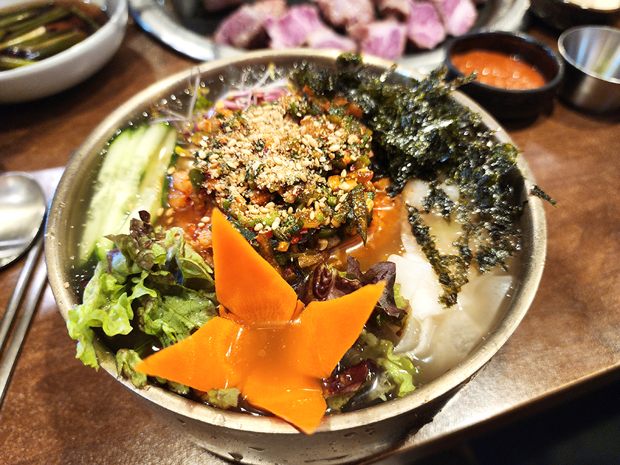 적당히 먹다보니 부족해서 통 생목살 2인분, 통 생삼겹살 2인분을 추가로 주문했습니다. 그리고 육전 묵사발도 추가로 주문했습니다. 묵사발이 고기랑 정말 잘 어울리더군요. 국물은 시원하고 묵도 맛있었습니다.