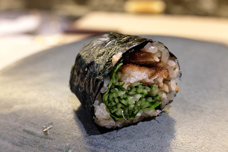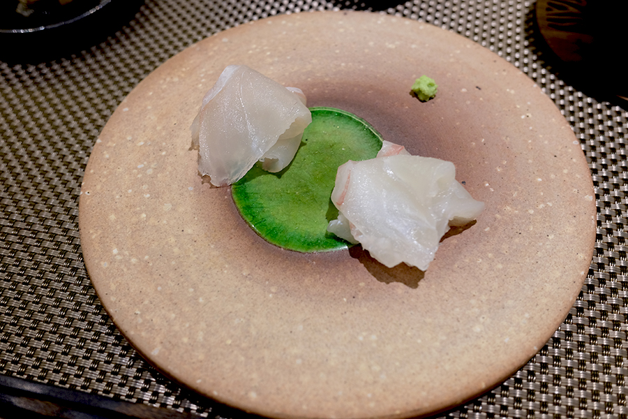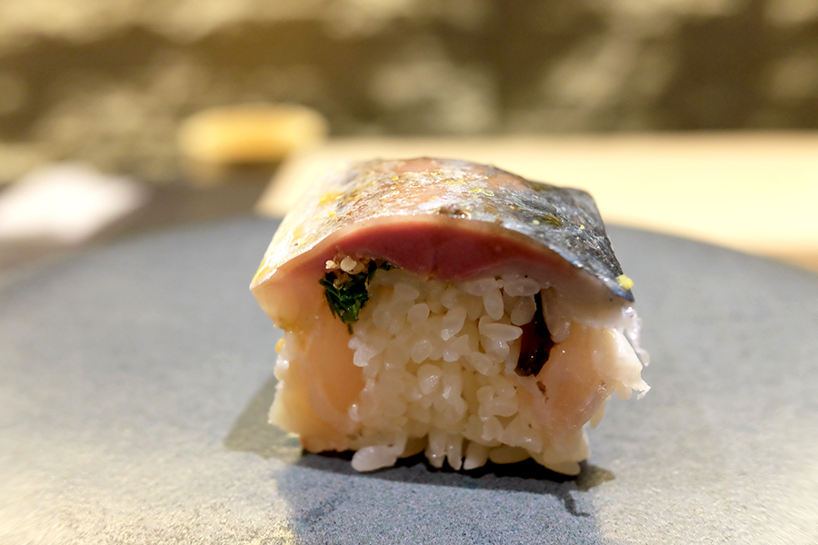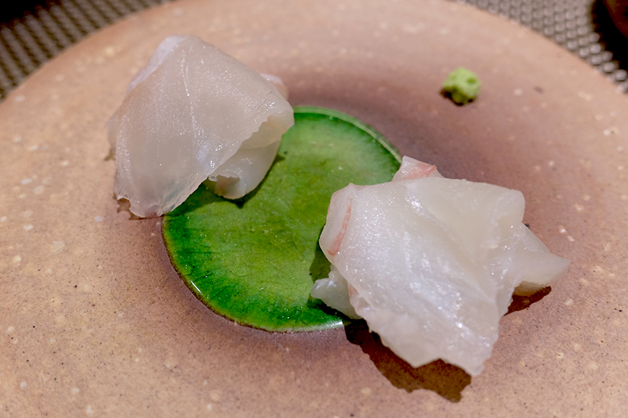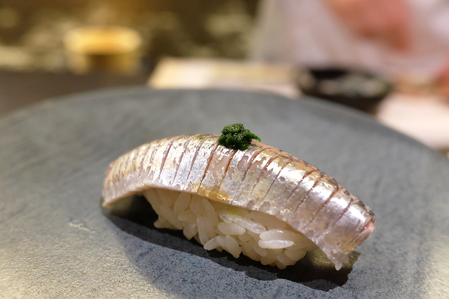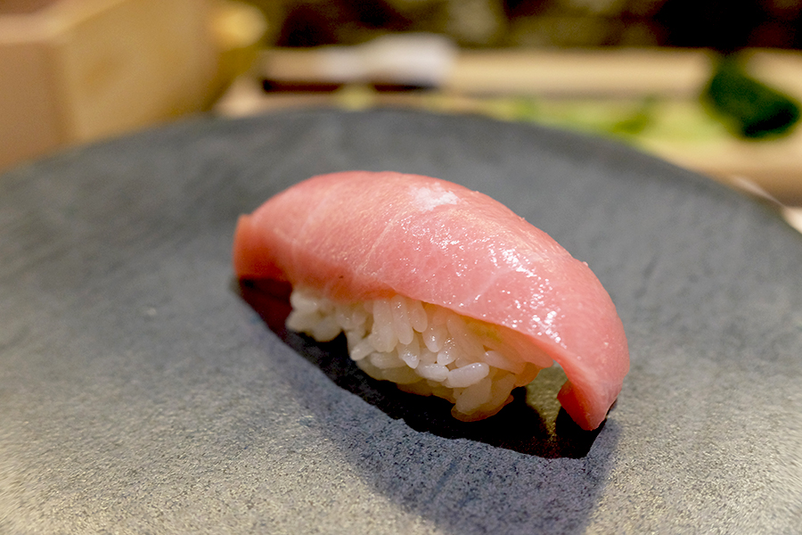 스시 첫 점은 참돔으로 시작합니다. 밥 양이나 네타 크기 모양 다 좋은데 살짝 샤리가 짜단 느낌이 들더라고요. 초보다 소금 간을 더 강하게 하시는 건지 모르겠지만 스시야 다니면서 샤리가 짜단 느낌은 이 날 처음 받았거든요. 산모식에 익숙해져서 그런 건지 잠깐 헷갈렸는데 제 생각엔 그냥 좀 짠 거 같습니다. 샤리 수분감, 온도 다 괜찮은데 다소 짠 느낌이 아쉬웠습니다.