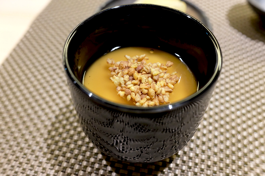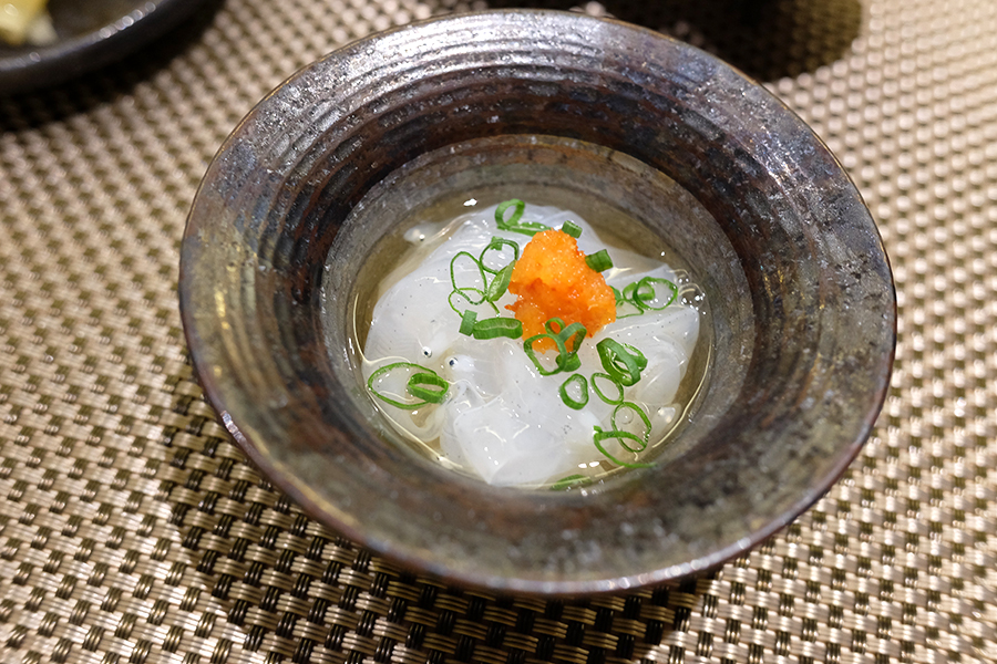차완무시로 시작합니다. 위에는 메밀을 올렸는데 고소하고 맛있었는데 제 입맛엔 살짝 짜단 느낌이 들더라고요. 전체적으로 섞어 먹어야 짠맛이 좀 중화되더라고요.