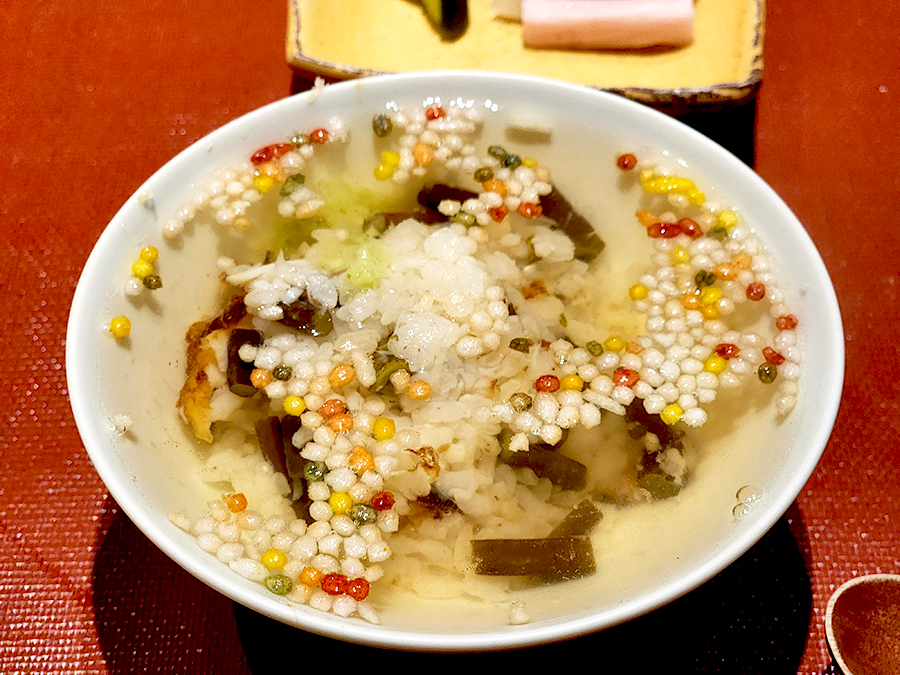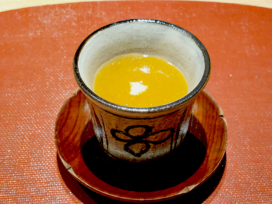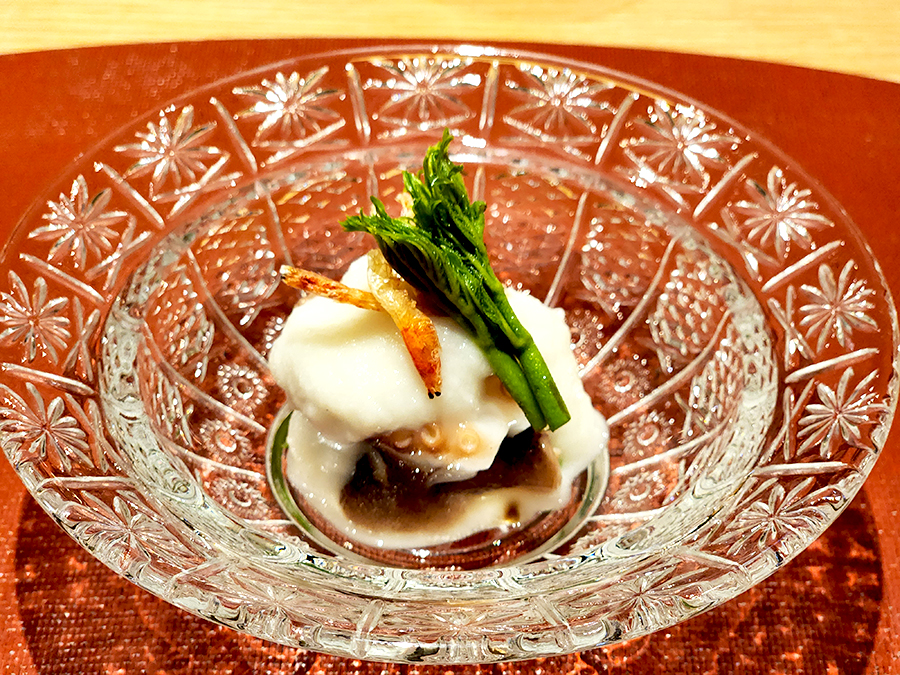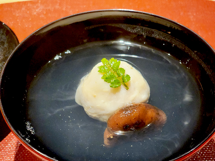 이건 대합을 갈아 만든 요리였는데, 버섯이 함께 들어가 있어서 풍미가 더욱 풍부했습니다. 전체적인 형태는 스이모노 스타일로, 맑은 국물이 시원하게 넘어오더군요. 진한 대합이 느껴지는데 갑자기 술이 당기더라고요.