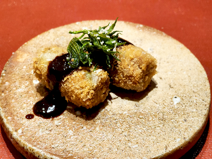 한우투뿔을 가지고 만든 멘치카스입니다. 멘치카스는 전혀 느끼 하지 않고 미소 소스와 함께 먹으니 맛이 좋았습니다.