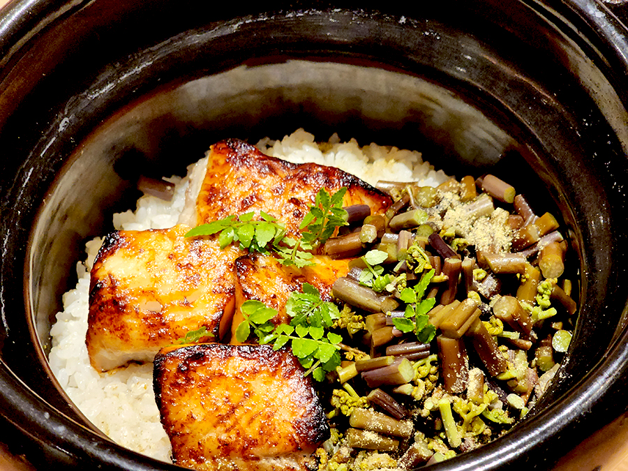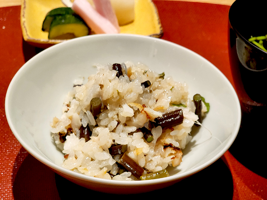 은대구 솥밥을 먹다가 보니 식감이 점액질 같이 끈적거리는 게 느껴져서 셰프님에게 여쭈어보니 이 시기에 나오는 생고사리에서 나오는 점액성 물질이라고 했습니다. 마를 갈아서 넣은 것 같은 그런 식감이었습니다.