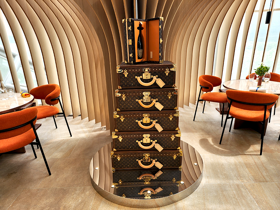 가운데는 루이비통 트렁크 위에 멋들어지게 돔페리뇽이 장식되어 있습니다.