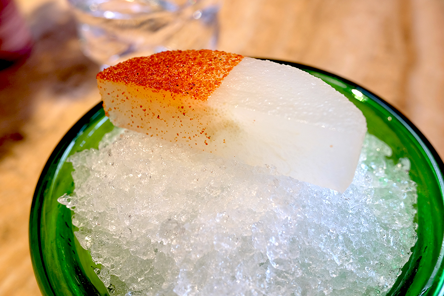 스프링 페퍼콘 티. 핑거 푸드가 먼저 나옵니다. 스프링 페퍼콘 티는 다시마 우린 물에 캐모마일, 페퍼민트를 함께 넣은 차라고 소개해주셨어요.