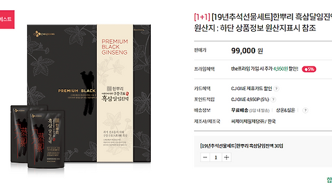 | 추석 명절 선물세트, 한뿌리 흑삼달임진액 30입 특가 추천 (0) | 2019.08.28 |